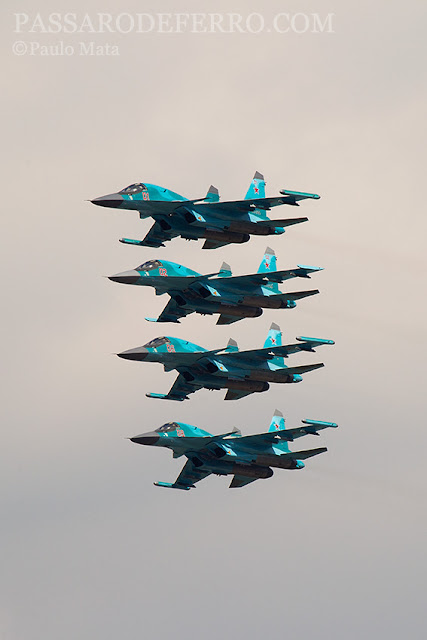 Entre números menores e aeronaves menos importantes desfilaram ainda sobre o aeródromo formações mistas e puras das aeronaves que formam a espinha dorsal de caça-bombardeiros russos operacionais, constituída actualmente por Su-24, Su-25, Su-27, Su-34, Mig-29 e Mig-31.